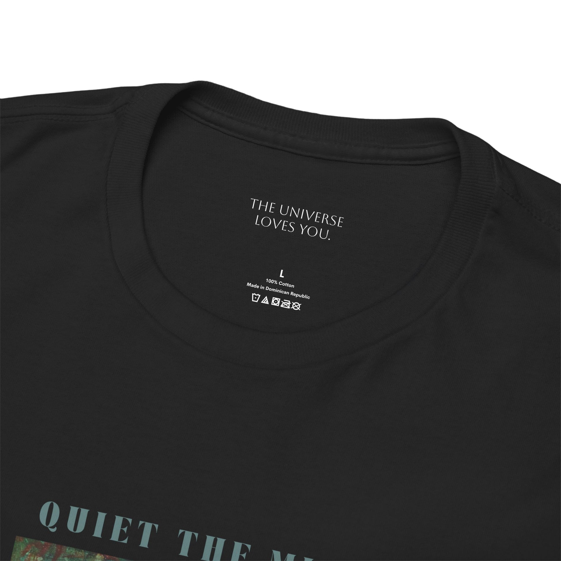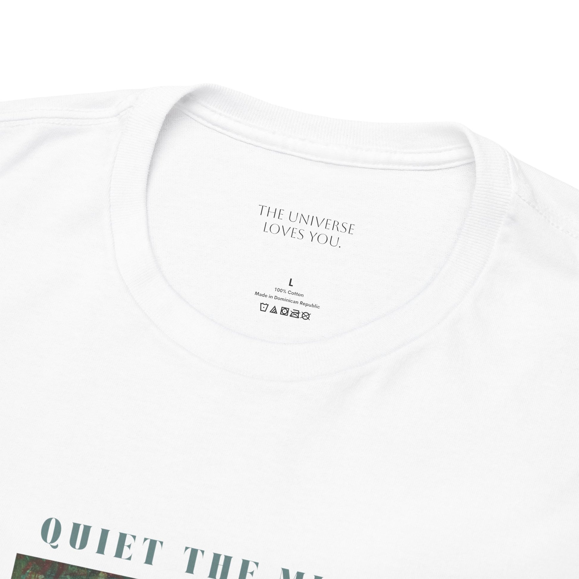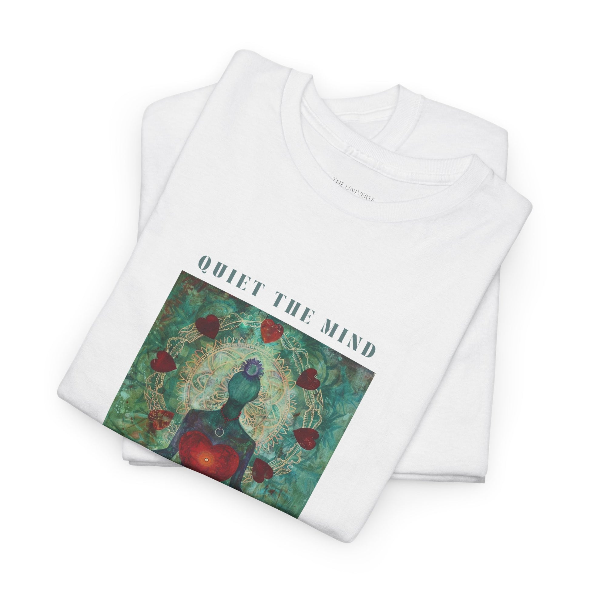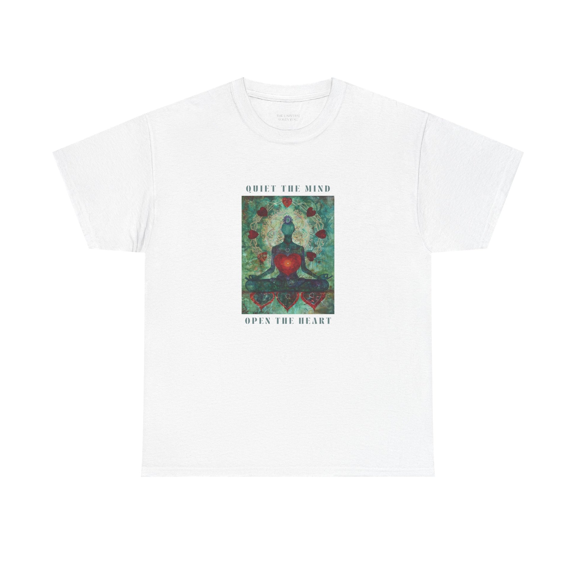 An uplifting T-Shirt designed to quiet the mind and open the heart, featuring heart chakra-oriented design elements. Perfect for those who enjoy heart chakra frequency music and seek to embrace love and openness. Suitable for adults who appreciate spiritual and positive vibes, ideal for holidays and occasions centered around love and gratitude.